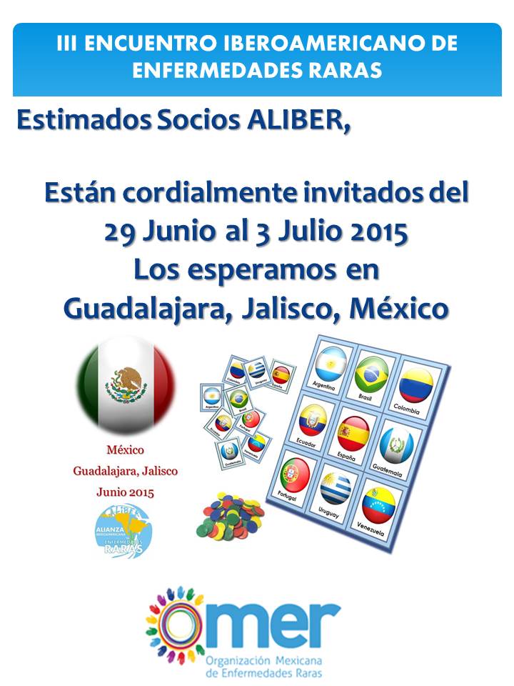 OMER tiene el agrado de invitarte a participar en el “III Encuentro Iberoamericano de Enfermedades Raras” que se celebrará este 29 de Junio de 2015, en la Ciudad de Guadalajara, Jalisco.